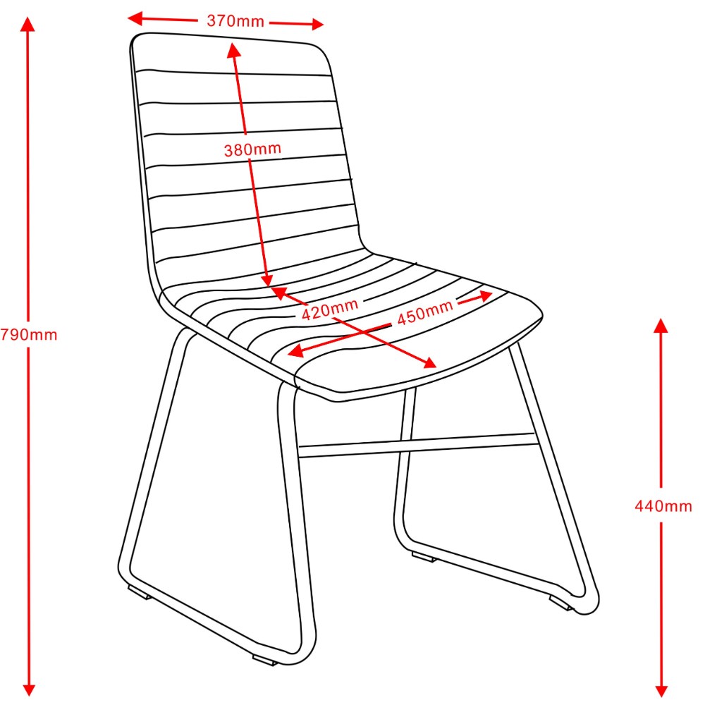 Seat Width: 450mm. Seat Depth: 420mm. Seat Height: 440mm.