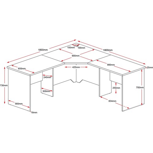 Rapidline Rapid Worker Corner Workstation 1800/1800W x 600D x 730mmH Cherry And Ironstone