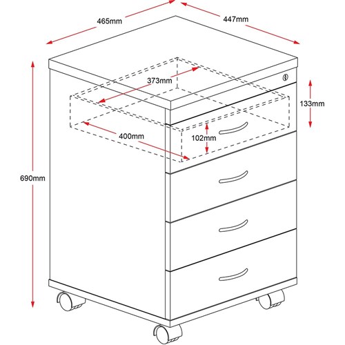 Rapidline Rapid Worker Mobile Pedestal 4 Drawer 465W x 447D x 690mmH Ironstone