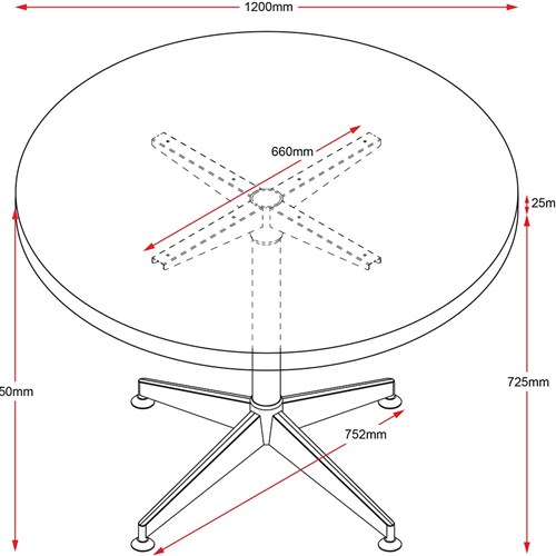 Rapidline Typhoon Round Meeting Table 1200D x 730mmH Cherry Top Black Base