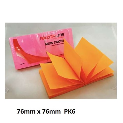 RAZORLINE POP UP NOTES 76x76mm NEON ASSORTED PK6