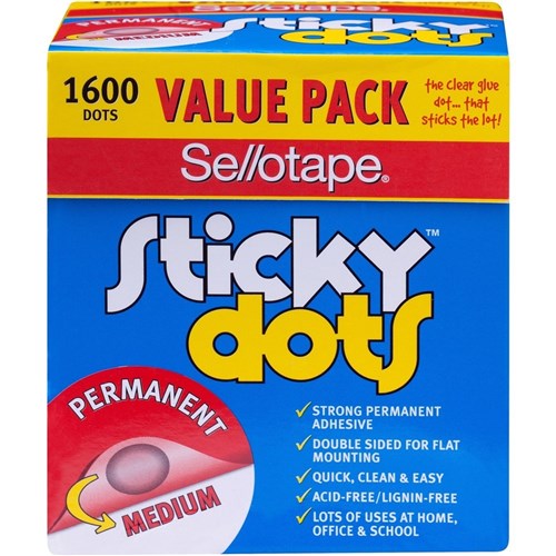 Sellotape Sticky Dots Value Pack 10mm Permanent Adhesive Clear Pack of 1600
