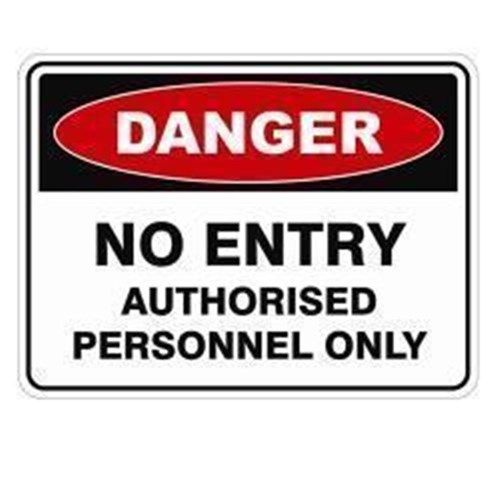 SIGN - DANGER NO ENTRY AUTHORISED PERSONNEL ONLY - 300x225mm ADHESIVE STICKER