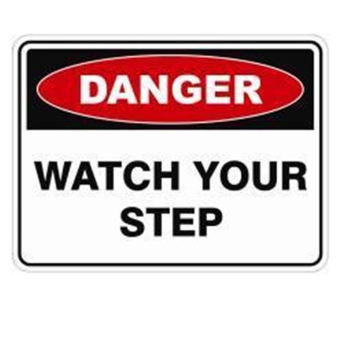 SIGN - DANGER WATCH YOUR STEP- 300x225mm ADHESIVE STICKER