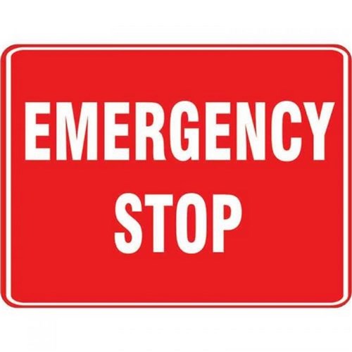 SIGN - EMERGENCY STOP - 220x150mm ADHESIVE STICKER