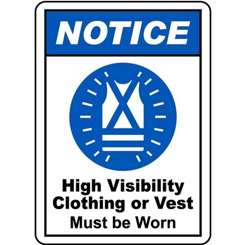 SIGN - HIGH VISIBILITY CLOTHING OR VEST MUST BE WORN- 600x450mm FLUTED POLY