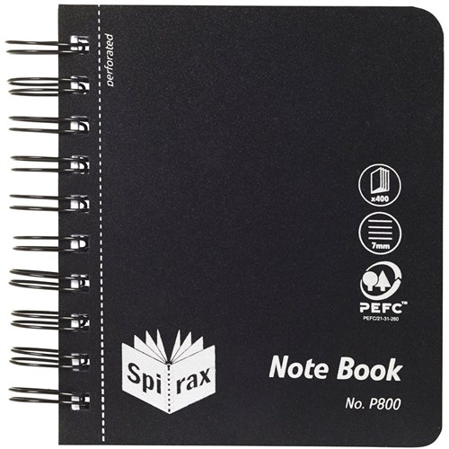 Spirax P800 Notebook Poly Cover 120mm x 140mm Ruled 400 Page Side Opening Black