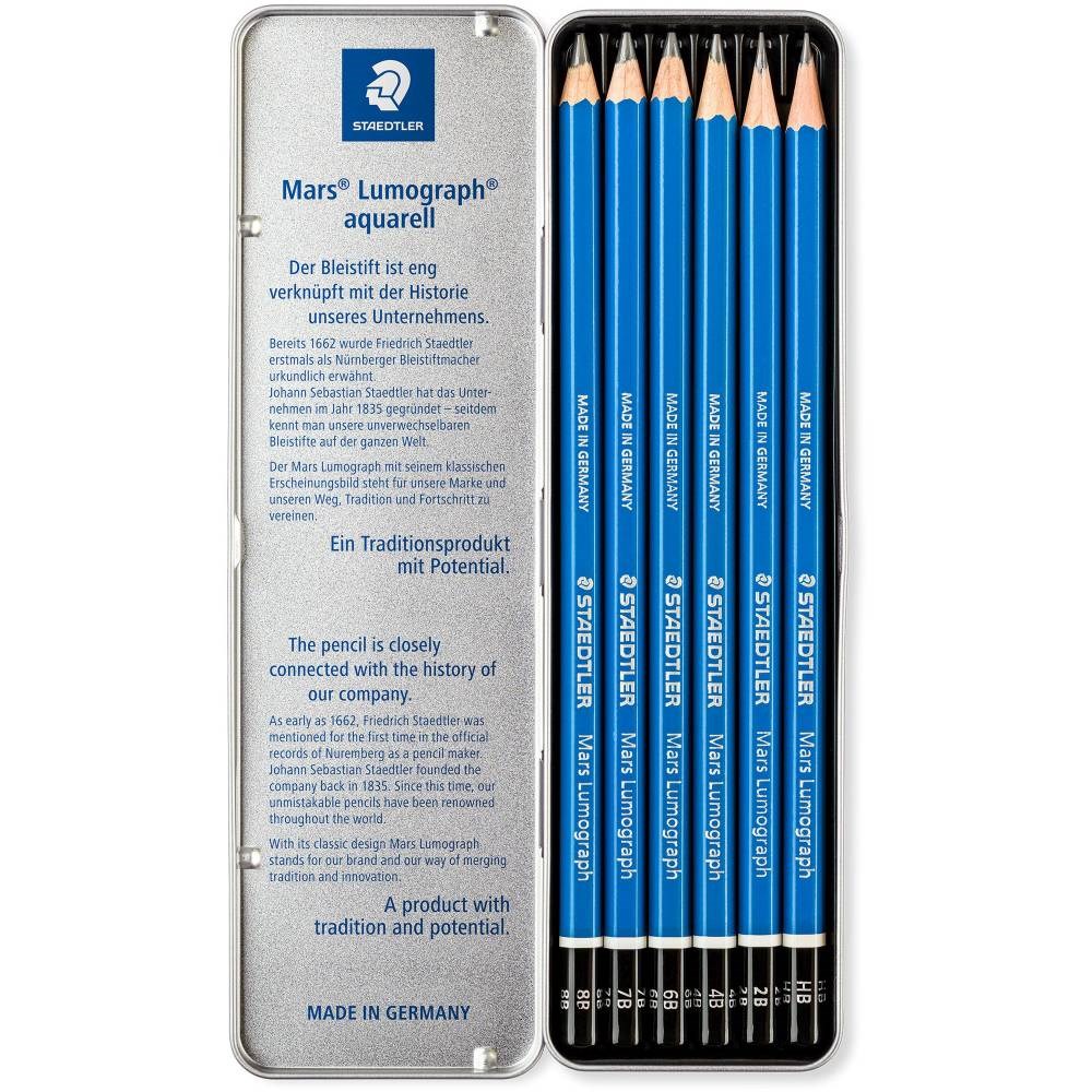 Staedtler 100 Mars Lumograph Sketching Pencils Assorted Degrees Graphite Pack of 6