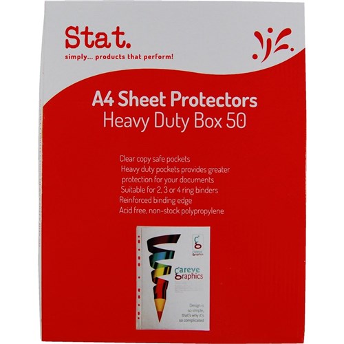 Stat Sheet Protectors A4 Heavy Duty 70 Micron Clear Pack of 50