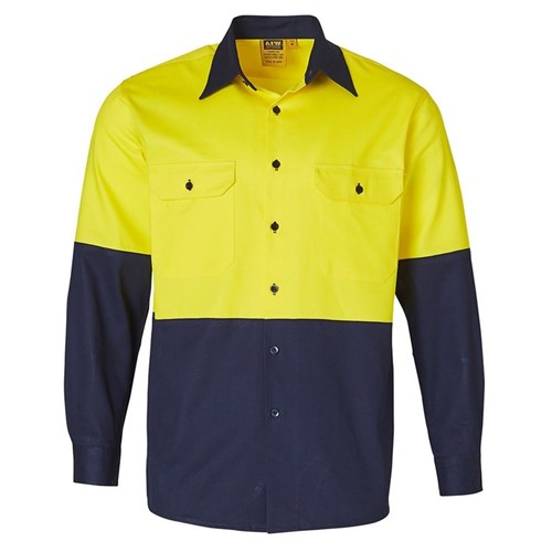 SW54 HI-VIS DRILL SHIRT L/S 190gsm YELLOW/NAVY S