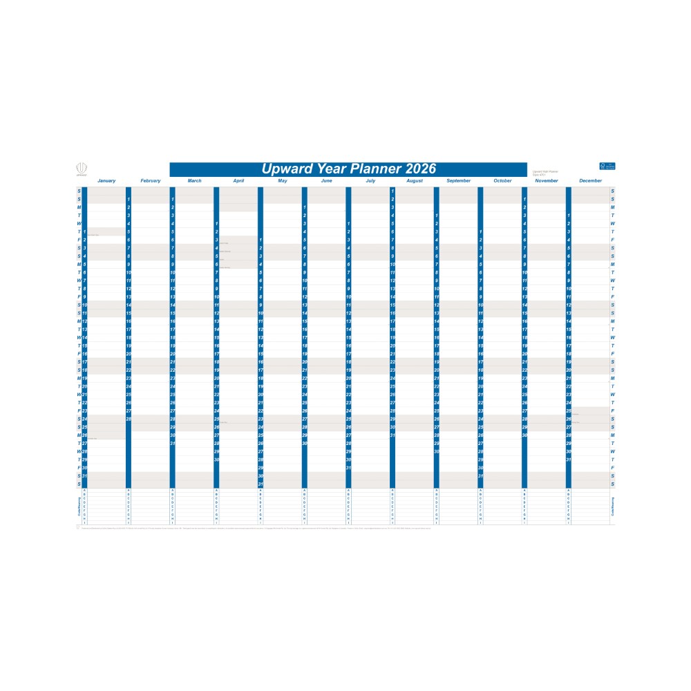 Upward Dated Year Wall Planner 690 x 470mm Blue