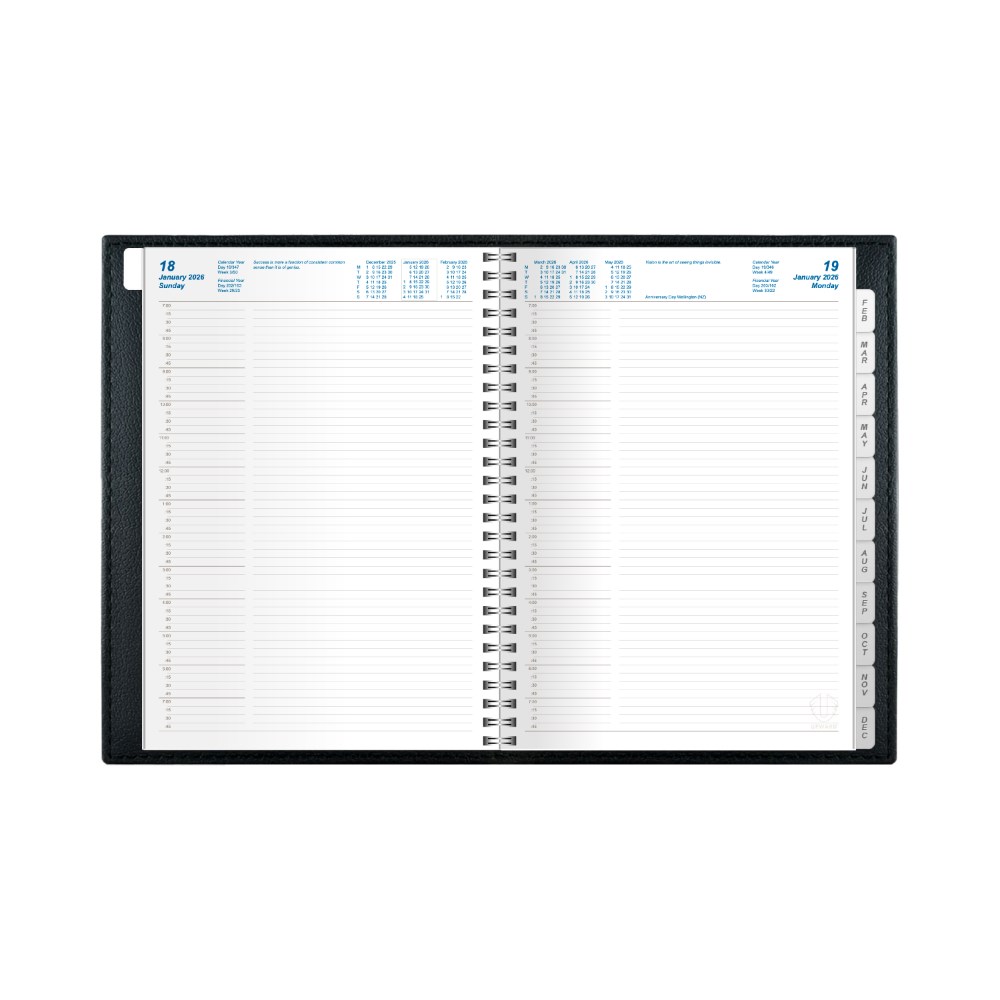This top of the range desk diary is perfect for everyday use in the office or at home. Lay flat opening.