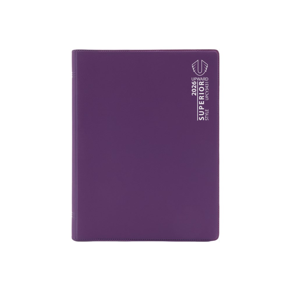 Featuring a padded, phthalate free, PVC cover, pockets for storing business cards and wire-o binding to allow the diary to lie completely flat when open.