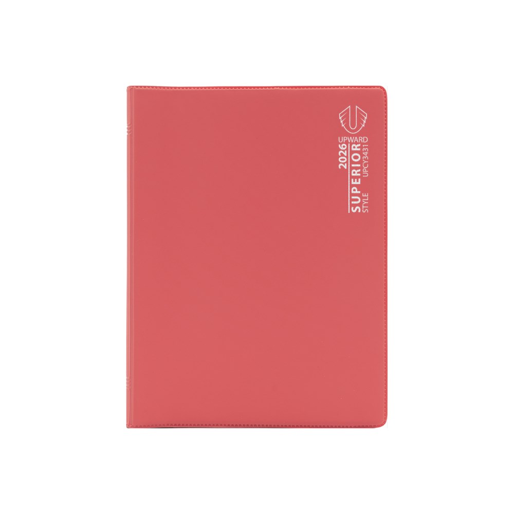 Featuring a padded, phthalate free, PVC cover, pockets for storing business cards and wire-o binding to allow the diary to lie completely flat when open.