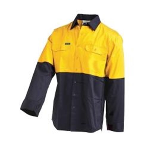 WORKIT 2007 HI VIS L/WEIGHT DRILL SHIRT L/S YELLOW/NAVY XXS