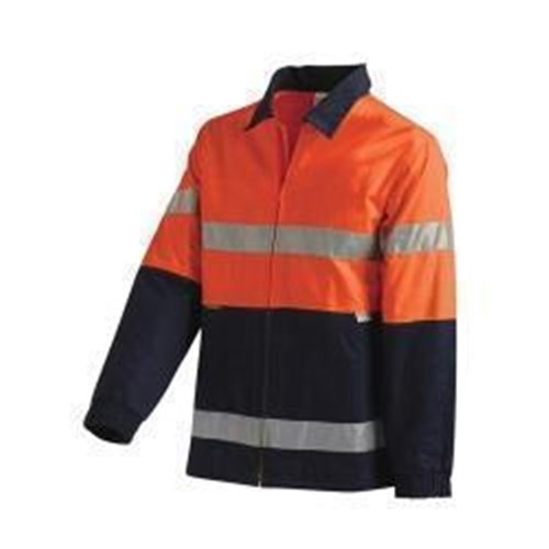WORKIT 3001 HI-VIS COTTON DRILL JACKET REFLECTIVE TAPE ORANGE/NAVY 5XL